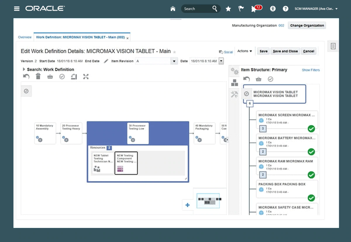 Streamline your global, mixed-mode manufacturing operations with Oracle Manufacturing Cloud—a global software solution leveraging tight supply chain integration, Internet of Things (IoT), AI, and machine learning (ML) to simplify shop floor execution, optimize real-time decisions, and control quality and cost.