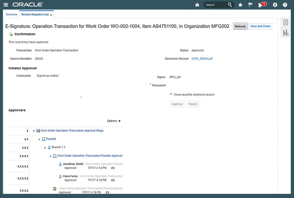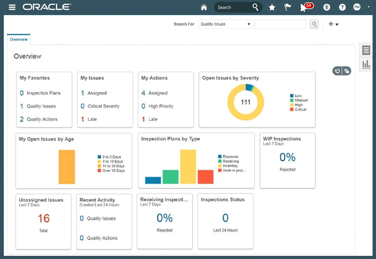 Use Oracle Quality Management Cloud to manage issues and corrective actions through the lifecycle, capturing approvals, verifying the solution, and closing the incident.