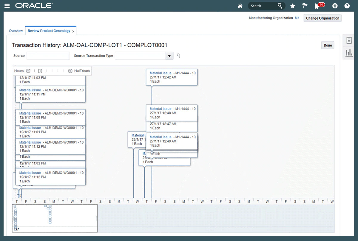 Collect the lot and serial transactions in inventory and manufacturing processes into product genealogy. Alternate cost methods, currencies, and overheads.