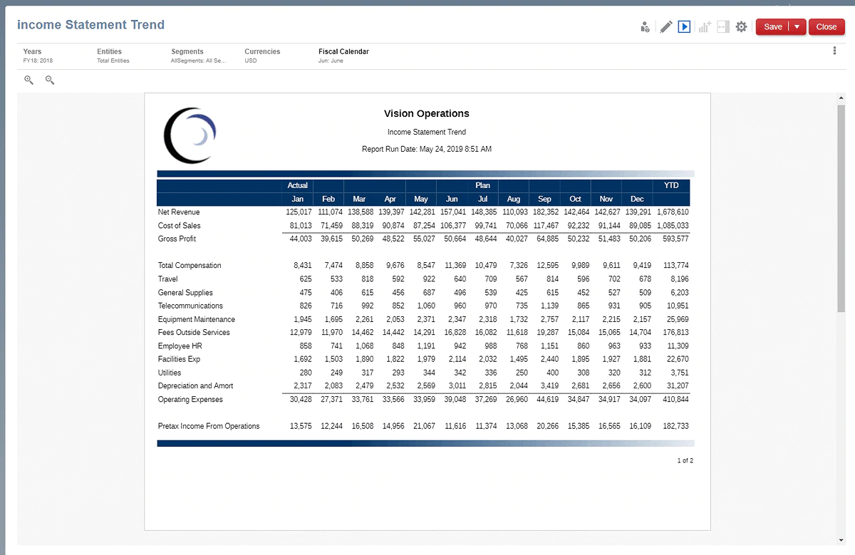 Create grids, charts, reports, and narratives using Microsoft Office and Management Reporting.