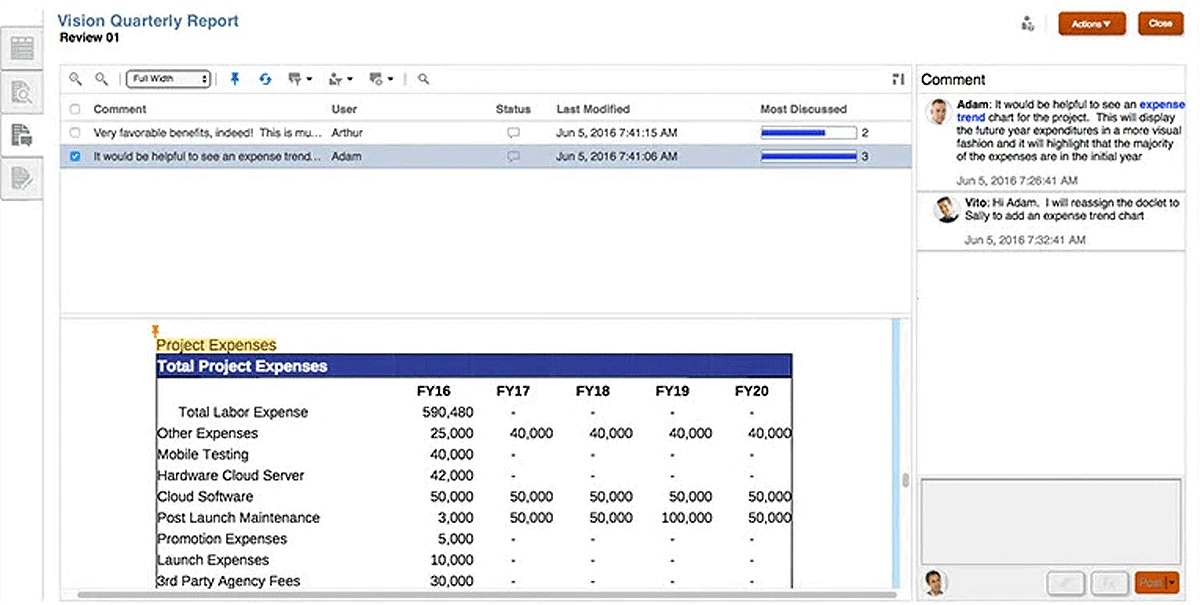 Anchor commentary against content in the report and carry it forward throughout the review lifecycle.