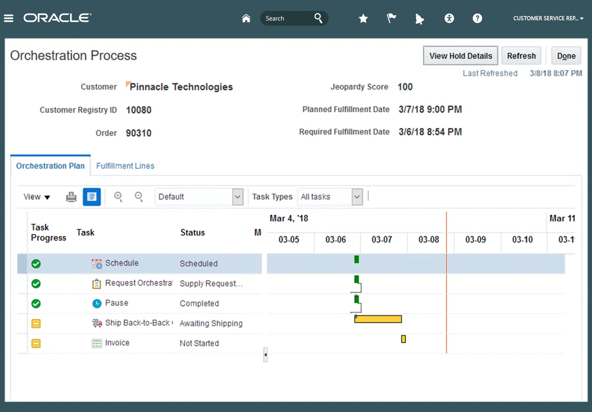 With Oracle Order Management Cloud, you can manage orders from all your channels to get a single view of your customers, orchestrate all your order-to-cash processes, and proactively resolve exceptions.