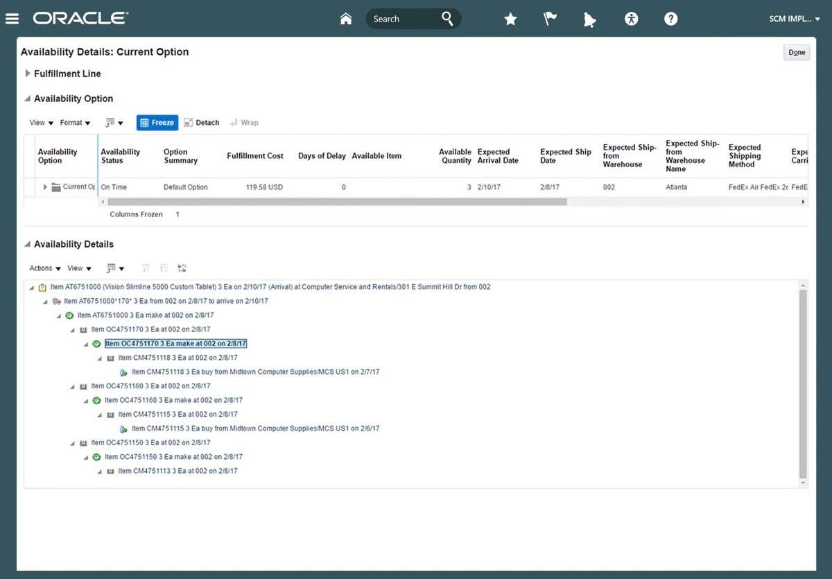 Adjust supply sources, lead times, and on-hand availability based on the model options ordered.